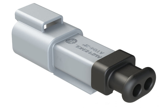 AT04-2P-SR02GRY 2-Way Receptacle Male Connector with Strain Relief End Cap and .053-.120 Reduced Seal, Grey. DT04-2P-CE04