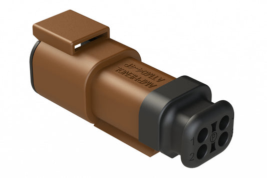 ATM04-4P-SR01BN 4 Position, Receptacle, Pin, Standard Diameter Rear Seal (Red), SR01 Strain Relief, Brown Body (Requires Wedgelock AWM-4P.)