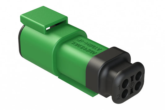 ATM04-4P-SR01GN 4 Position, Receptacle, Pin, Standard Diameter Rear Seal (Red), SR01 Strain Relief, Green Body (Requires Wedgelock AWM-4P.)