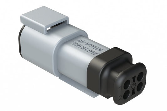 ATM04-4P-SR01GY 4 Position, Receptacle, Pin, Standard Diameter Rear Seal (Red), SR01 Strain Relief, Grey Body (Requires Wedgelock AWM-4P.). DTM04-4P-E007