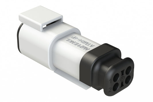 Amphenol Sine Systems’ AT Series™ SR01 and SR02 connectors are a high-performance, thermoplastic, cost-effective solution with specificallydesigned, wire cavities that protect each individual wire seal, eliminating stress on the rear seal while maintaining an IP68/69K rated (mated) performance regardless of wire bundle direction or improper installation.