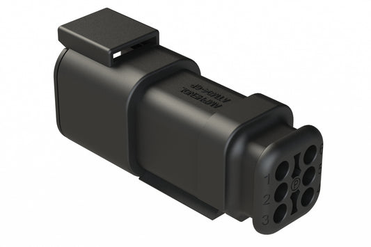 ATM04-6P-SR01BK 6 Position, Receptacle, Pin, Standard Diameter Rear Seal (Red), SR01 Strain Relief, Black Body (Requires Wedgelock AWM-6P.). DTM04-6P-E005
