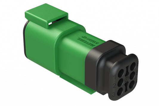 ATM04-6P-SR01GN 6 Position, Receptacle, Pin, Standard Diameter Rear Seal (Red), SR01 Strain Relief, Green Body (Requires Wedgelock AWM-6P.)