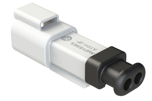 AT04-2P-SR01WHT 2-Way Receptacle Male Connector with Strain Relief End Cap and Standard Seal, White