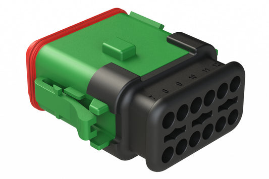AT06-12SA-SRGN 12-Way Plug Female Connector with Strain Relief Endcap, Standard Seal, A Position Key, Green