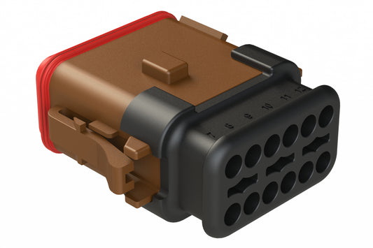 AT06-12SB-SRBR 12-Way Plug Female Connector with Strain Relief Endcap, Standard Seal, B Position Key, Brown