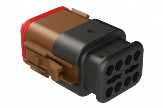 AT06-08SA-SRBR 8-Way Plug Female Connector with Strain Relief Endcap, Standard Seal, A Key, Brown