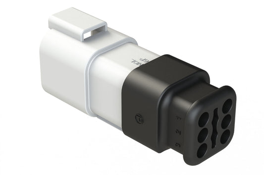 AT06-6S-SR02WHT 6-Way Plug Female Connector with Reduced Diameter Seal, Strain Relief Endcap, White