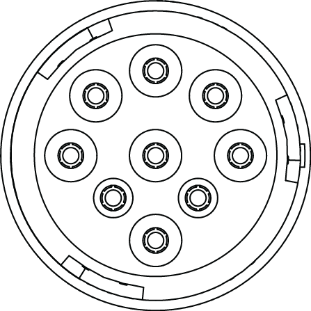 AHD10-9-1939P-BP80 9 Position, Receptacle, Jam Mount, Type 2. HD10-9-1939P-BP03