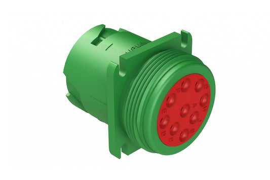 AHD10-9-1939P8R 9 Position Receptacle with Reduced Rear Seal, Male Flange Receptacle, Green, Type II. Threaded Rear, J1939. HD10-9-1939PE-P080