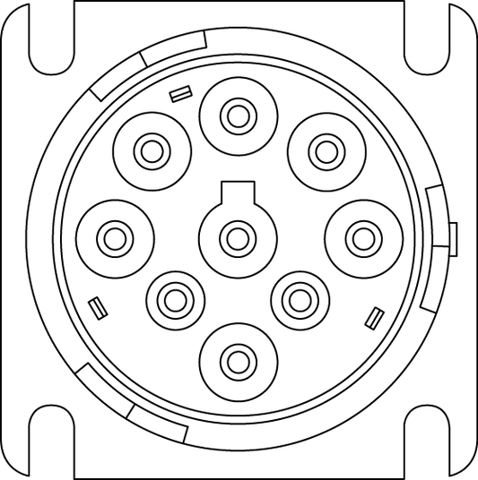 AHD10-9-1939P80 9 Position Receptacle, Male Flange Receptacle, Green, Type II. Threaded Rear, J1939. HD10-9-1939P-P080