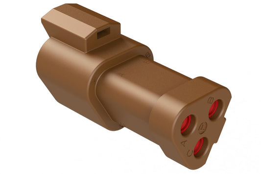 AT04-3P-EC01BRN 3-Way Receptacle, Male Connector with End Cap, Brown