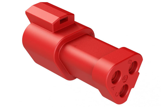 AT04-3P-EC01RED 3-Way Receptacle, Male Connector with End Cap, Red