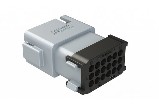Amphenol Sine Systems’ AT Series™ connectors are heavy-duty, thermoplastic, multi-pin solutions designed for 13A–25A applications with IP68 and IP69K sealing (in mated condition). Available in 2 to 18 positions, including mixed layouts, the AT Series™ combines superior environmental sealing and UV resistance with a secure integrated latch system featuring oversized detents for reliable electrical and mechanical connections. Offering best-in-class wedgelocks, multiple end cap and strain relief options, and compatibility with industry-standard products, these connectors deliver cost-effective, high-performance interconnects. With options such as BoardLock™, HYPERBUSS™, LED, PanelMate™, and StructurePlus™, the AT Series™ is ideal for marine, heavy equipment, agriculture, automotive, alternative energy, and other demanding environments.