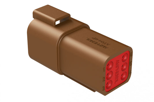 AT04-6P-BRN 6-Way Receptacle, Male Connector, Brown