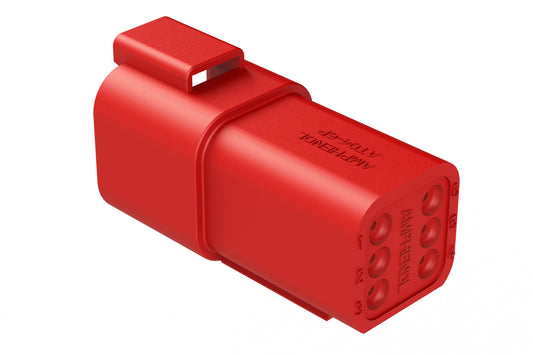 AT04-6P-RED 6-Way Receptacle, Male Connector, Red