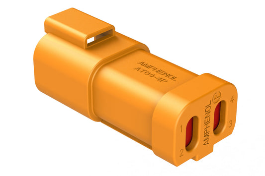 AT04-4P-SS01ORG 4-Way Receptacle, Male Connector with Solid Rear Grommet and Endcap, Orange