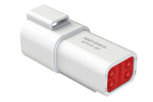 AT04-4P-SS01WHT 4-Way Receptacle, Male Connector with Solid Rear Grommet and Endcap, White