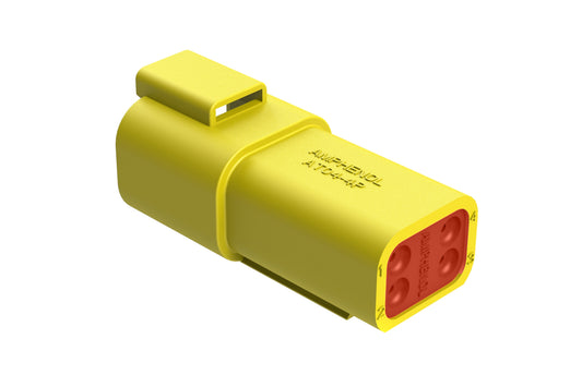 AT04-4P-SS01YEL 4-Way Receptacle, Male Connector with Solid Rear Grommet and Endcap, Yellow