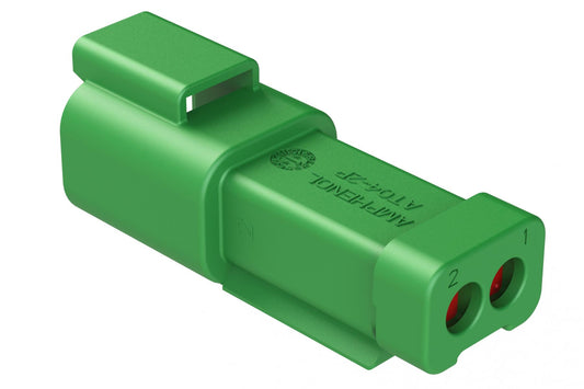 AT04-2P-SS01GRN 2-Way Receptacle, Male Connector with Solid Rear Grommet and Endcap, Green