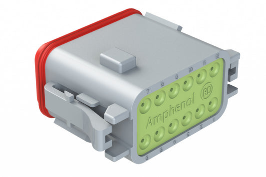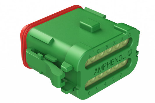 AT06-12SA-RDGRN 12-Way Plug, Black Female Connector with A Position Key and Reduced Diameter Seal (E-Seal), Green