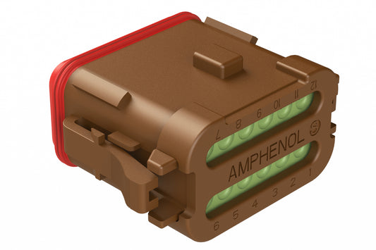 AT06-12SA-MMBRN 12-Way Plug, Female Connector with A Position Key and Reduced Diameter Seal (E-Seal) and Enhanced Seal Retention(P012) and End Cap, Brown