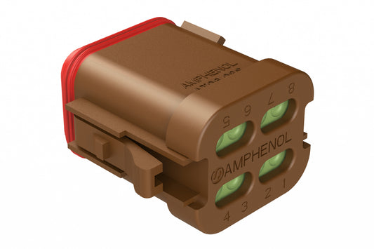 AT06-08SA-MMBRN 8-Way Plug, Female Connector with A Position Key, Reduced Diameter Seals (E-Seal) and End Cap, Brown