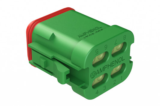 AT06-08SA-MMGRN 8-Way Plug, Female Connector with A Position Key, Reduced Diameter Seals (E-Seal) and End Cap, Green