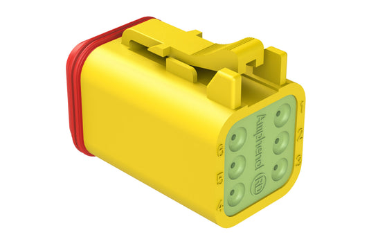 AT06-6S-RD01YEL 6-Way Plug, Black Female Connector with Reduced Diameter Seal (E-Seal), Yellow