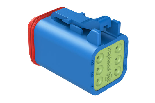 AT06-6S-RD01BLU 6-Way Plug, Black Female Connector with Reduced Diameter Seal (E-Seal), Blue