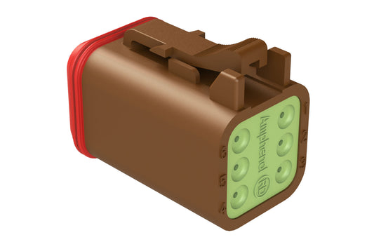 AT06-6S-RD01BRN 6-Way Plug, Black Female Connector with Reduced Diameter Seal (E-Seal), Brown