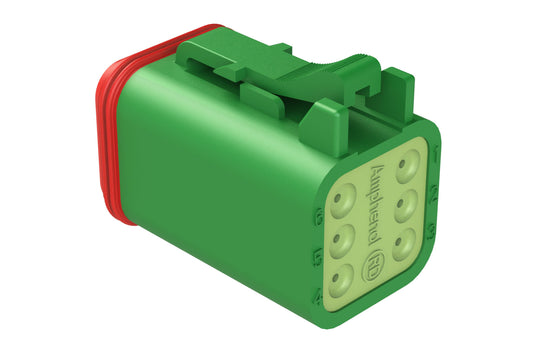 AT06-6S-RD01GRN 6-Way Plug, Black Female Connector with Reduced Diameter Seal (E-Seal), Green