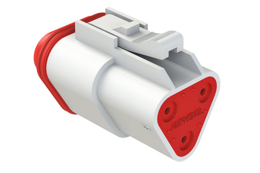 AT06-3S-SS01RED 3-Way Plug, Female Connector with Solid Rear Grommet and Endcap, Wedgelock included, Red