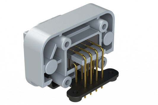 ATM13-08PA-BM02 8 Position Right Angle Flange Mount PCB Receptacle, Potted, Grey, Gold Plated Contacts Included. Keyed A