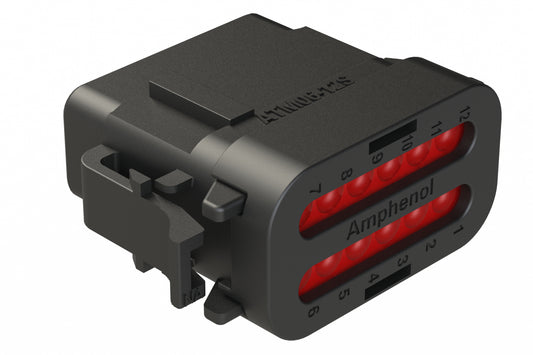 Amphenol Sine Systems’ ATM Series™ connectors are compact, high-performance thermoplastic solutions designed for smaller 16–22 AWG applications with size 20 contacts supporting up to 7.5A. Available in 2, 3, 4, 6, 8, and 12 positions, these IP68/IP69K-rated connectors (in mated condition) deliver superior environmental sealing, seal retention, and reliable performance in harsh conditions. Featuring an integrated latch, high-temperature silicone seals, and wedgelocks for proper contact alignment, ATM connectors are cost-effective, industry-standard compatible, and available in options such as BoardLock™, PanelMate™, ATMH high-temperature (-55°C to 150°C), and SF01 Snap-Fit Cap versions for enhanced seal stability. Ideal for marine, heavy equipment, agriculture, automotive, alternative energy, and other demanding environments, the ATM Series™ ensures reliable connectivity where space and durability are critical.