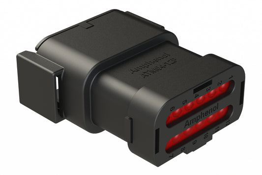ATM04-12PA-SF1BK 12 Position Receptacle, Pin, Keyed A, Snap-Fit End Cap, Black. DTM04-12PA-E005