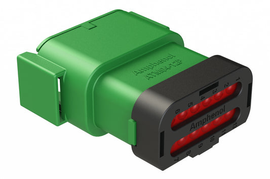ATM04-12PC-SF1GN 12 Position Receptacle, Pin, Keyed C, Snap-Fit End Cap, Green. DTM04-12PC-E003