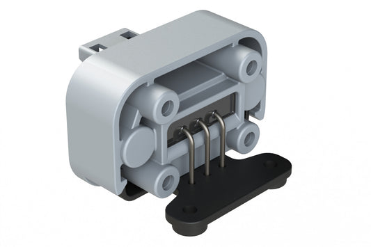 ATM13-3P-BM04 3 Position Right Angle Flange Mount PCB Receptacle, Potted, Grey, Tin Plated Contacts Included