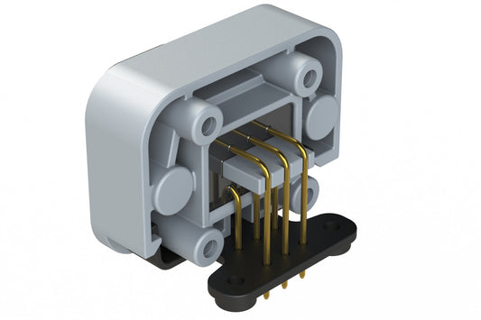 ATM13-6P-BM01 6 Position Right Angle Flange Mount PCB Receptacle, Grey, Gold Plated Contacts Included