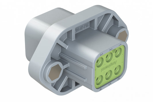 ATP04-6P-PM06 6 Position Panel Mount Receptacle with Flange, Pin, with Gasket and Threaded Insert, Reduced Diameter Seal, Grey