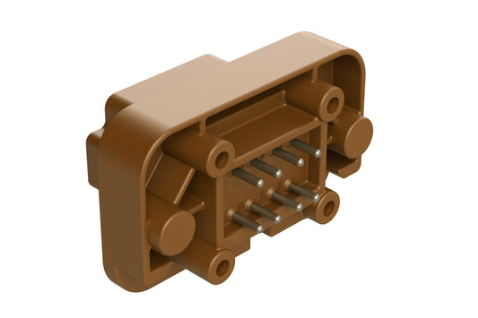 AT15-08PD-BM03 8 Position Flange Mount PCB Receptacle, Brown, Tin Plated Contacts Included. Keyed D. DT15-08PD