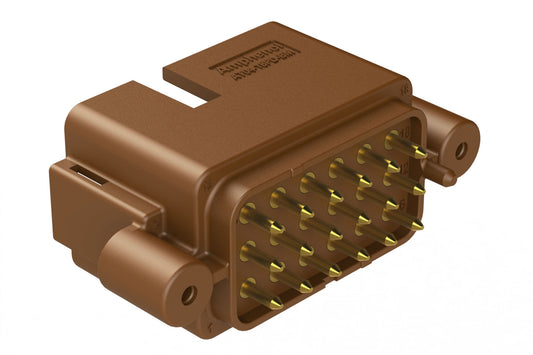 AT04-18PD-BM12 18 Position PCB Receptacle, Flangeless, Self-Threading, Keyed D, Gold Plated Contacts Included, Potted, Brown Body