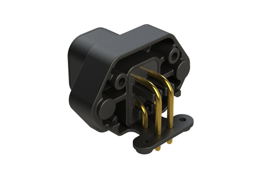 Amphenol Sine Systems’ BoardLock™ Family combines flanged or flangeless, 180° straight or 90° right angle pin-oriented, wire-to-board versatility with the proven reliability of the A Series™ environmentally-sealed thermoplastic connection system with a maximum current rating up to 100A. Featuring a compact, durable, low-profile and lightweight design, perfect for power or data signal applications. All BoardLock™ product lines accept A Series™ components and are comparable with other industry standard mating connectors. All BoardLock™ variations are IP68 rated (in mated condition).