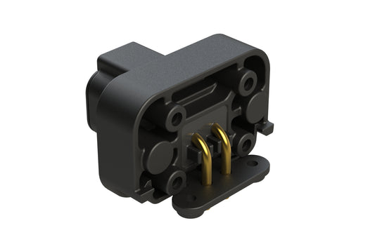 ATP13-2P-BM02BLK 2 Position 90° PCB Flange Mount Receptacle, black, molded gold Pins, potted, Black