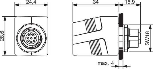 Actuator Sensor cable assembly|Panel connector|M 12|M 12