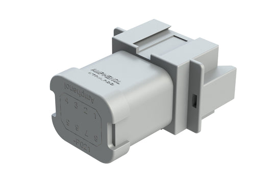 AT04-08PA-P021 8-way receptacle, (1) 8 Pin busbar=52 amps, nickel plating, keyed A, grey. Contacts included. DT04-08PA-P021