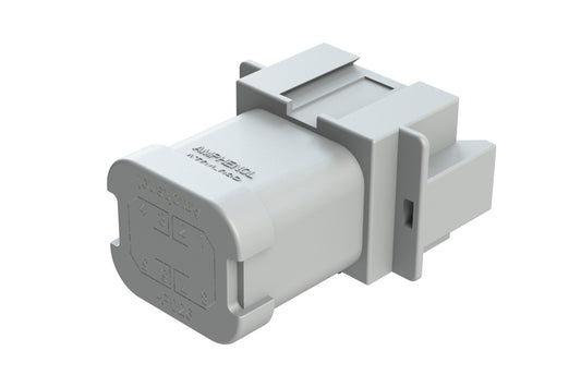 AT04-08PA-P026 8-way receptacle, (2) 4 Pin busbar=26 amps, nickel plating, keyed A, grey. Contacts included. DT04-08PA-P026
