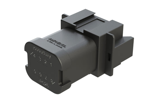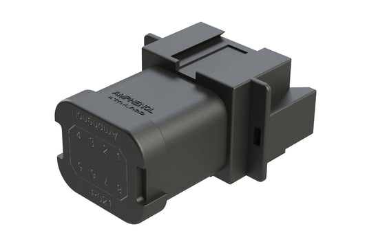 AT04-08PB-P021 8-way receptacle, (1) 8 Pin busbar=52 amps, nickel plating, keyed B, black. Contacts included. DT04-08PB-P021