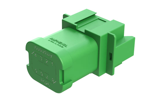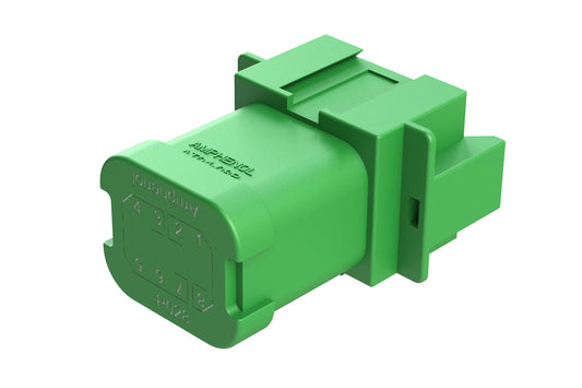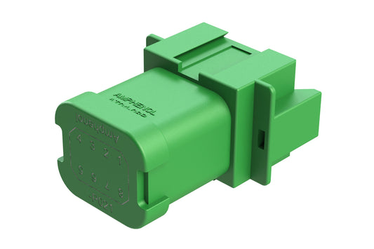 AT04-08PC-P021 8-way receptacle, (1) 8 Pin busbar=52 amps, nickel plating, keyed C, green. Contacts included. DT04-08PC-P021