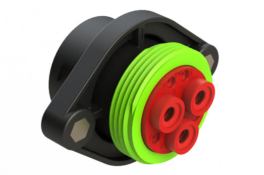 Amphenol Sine Systems’ PanelMate™ Family of receptacles are engineered with a one-piece, sealed, flanged design for rapid and secure mounting. Their durable, high-temperature, silicone, facial seal provides a barrier of protection from lubricating oils, hydraulic fluids and fossil fuels to withstand the challenges and complexities of harsh environment applications. Also available in a two-piece, sonically-welded, flange design for applications requiring an externally operated connection with 4 pass through holes. All PanelMate™ product lines accept A Series™ components and are comparable with other industry standard mating connectors.